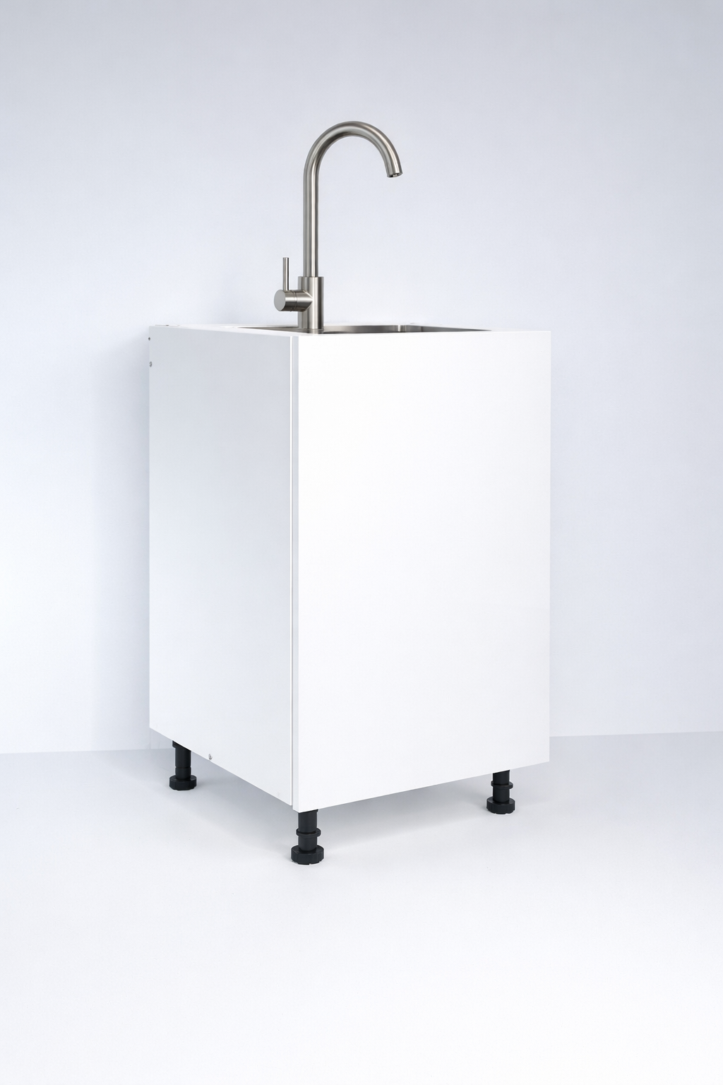 Módulo inferior con estructura en melamina blanca de 15 mm, tapacanto de 2 mm en todos los bordes expuestos, fondo de panel blanco de 3 mm, puertas con sistema push-open y bisagras de cierre suave. Incluye entrepaño ajustable, patas plásticas regulables y herrajes de ensamble. NO INCLUYE INSTALACIÓN